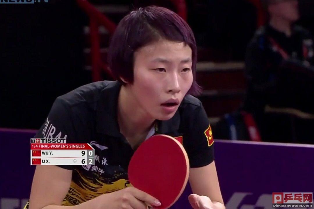 李晓霞连续拉武杨反手大角都拉不死,两人经过了多回合相持,李晓霞发力暴冲出界,打出开赛以来最精彩一球,全场喝彩,9-6。