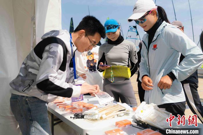 选手在整理船帆。 臧鲁敏 摄
