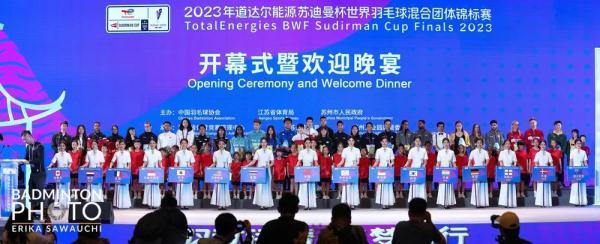 中国羽协主席张军在开幕式上致辞,他表示:今年苏杯是继2005年北京、2009年广州、2011年青岛、2015年东莞和2019年南宁后,苏迪曼杯第六次落户中国,再次承办此项赛事,充分体现了世界羽联和全世界羽毛球界的朋友们对中国的信任和支持,也是中国羽协对世界羽毛球运动推广、发展的全力支持和积极参与的体现。作为世界最高界别的团体羽毛球赛事之一,相信苏迪曼杯赛的举办不仅能够丰富广大苏州人民的体育文化生活,也一定会吸引更多城市、更多的球迷来到苏州或者通过屏幕观看本届苏迪曼杯赛,并因此参与到羽毛球运动中来。