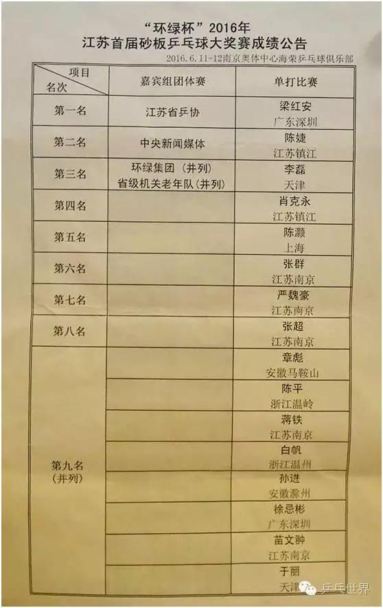 ▲江苏省乒协队获得团体比赛第一名!