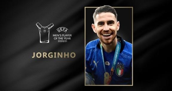 最重要的欧足联年度最佳球员奖项,颁给了切尔西的意大利国脚若日尼奥。上赛季,若日尼奥为切尔西出场43次,打进8球助攻2次,帮助球队拿到了欧冠冠军。随后,他又作为主力球员代表意大利队参加了欧洲杯,并帮助球队拿到了德劳内杯。一个赛季两个最重要的奖杯傍身,若日尼奥的当选实至名归。