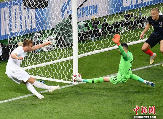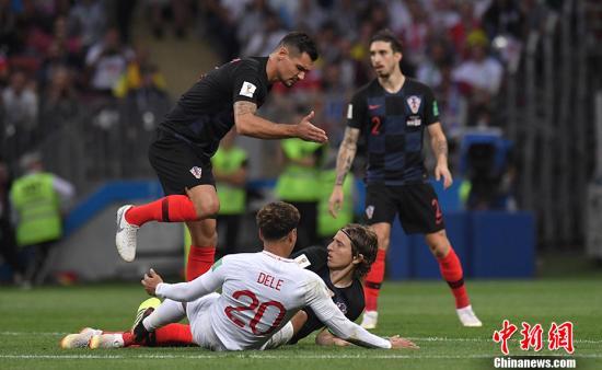 中新网7月12日电 北京时间7月12日凌晨,2018俄罗斯世界杯第二场半决赛在莫斯科卢日尼基球场展开较量,由“三狮军团”英格兰对阵“格子军团”克罗地亚。英格兰队特里皮尔“圆月弯刀”破门,佩里西奇门前垫射扳平,常规时间内两支队伍1:1战平。加时赛中,凭借曼朱基奇的破门,克罗地亚队2:1战胜英格兰挺进决赛,创造历史的他们将与“高卢雄鸡”争夺大力神杯。