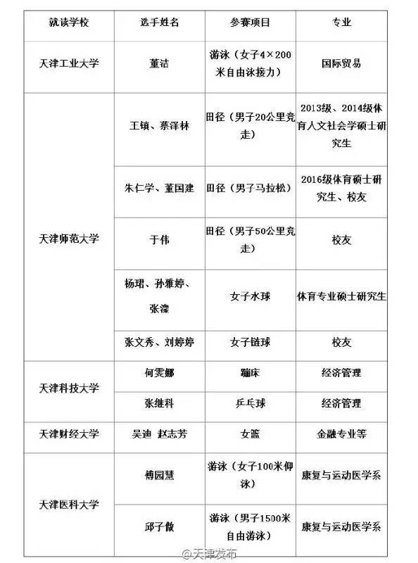 其实,除了傅园慧、王镇和蔡泽林,天津高校里还有一大波奥运选手即将登场里约奥运会,代表中国争金夺银,征战赛场。