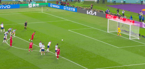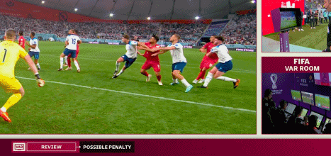 第98分钟,伊朗队获得单刀球机会,阿兹蒙最后的射门击中横梁弹出。第100分钟,伊朗队任意球开到禁区,普拉利甘吉在门前被斯通斯拉倒,裁判观看VAR后给了伊朗队一个点球。