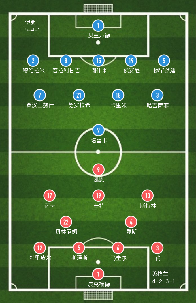 在最新的国际足联排名中,英格兰队排名世界第五;伊朗队虽然是亚洲排名最高的球队,但他们第20名的排名与英格兰队还是有很大差距。本场比赛,曾在中超效力的普拉利甘吉代表伊朗队首发。