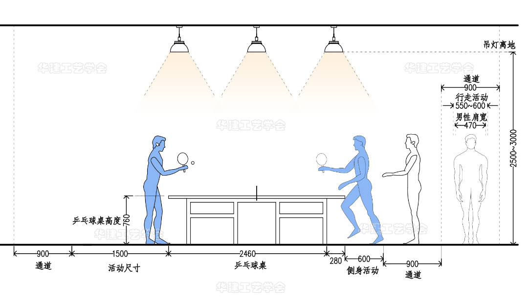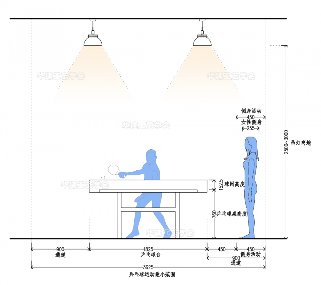 乒乓球台上方的光源离地宜为 2500~3000 mm。