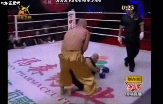 武僧一龙和王志亮的比赛可谓是非常精彩,王志亮时不时出现一个地躺拳,这场比赛也很有戏剧性,看起来很好玩,中间两人还出现了地面技术,一龙看起来像是打算用一个十字固技术来降服王志亮!