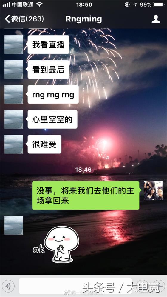 但是赛后第一时间现场的观众都在呼喊RNG,摄影师@一村也在微博晒出了和RNG辅助Ming的聊天记录:
