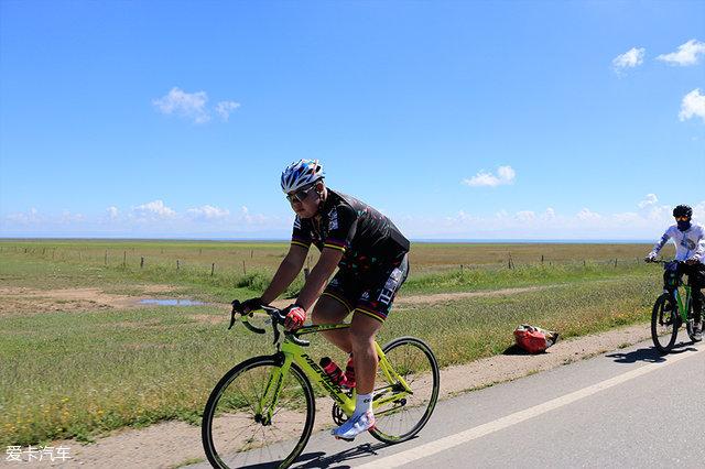 跑步接力结束后,大家调整身体节奏和状态并准备进入下一环节长达50km的环青海湖接力骑行。骑行分为四段接力,分别是10km两棒和15km两棒。