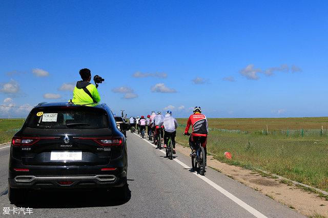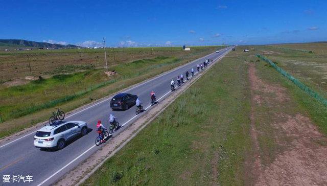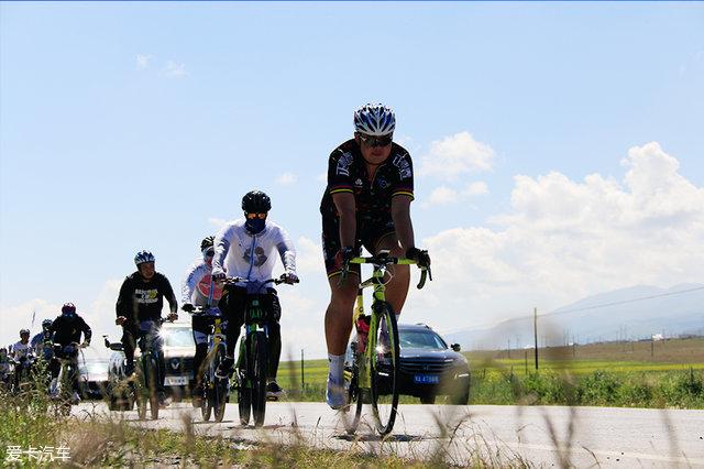 出于安全的考虑,骑行接力的第一段由骑行教练带队,选手们排成“一字长蛇阵”沿着109国道一路向西。