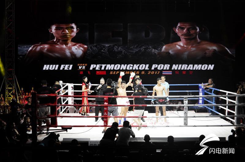 随后进行的第二场 60KG 级对抗,来自中国的惠飞对战泰国的贝蒙空,在这场火药味十足的对决中,惠飞以 30:29、30:30 和 30:29 的比分取得胜利。除了 60KG 级别对抗,今晚进行了 64KG 级、68KG 级、72KG 级,以及拳王明星对抗赛。