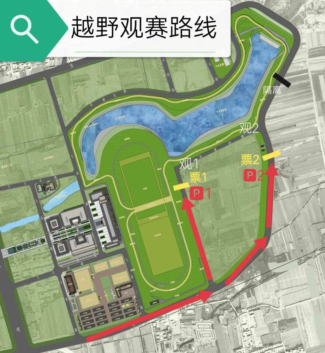 4月8日的比赛则在越野场地举行,请您一路向东行走至场地外的固定点位观赛(如图)。