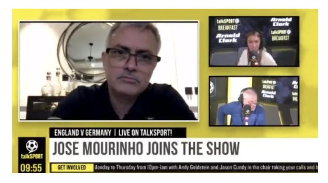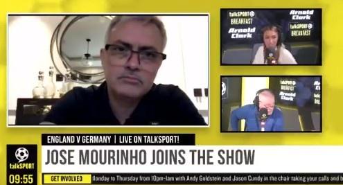 直播吧6月29日讯 穆里尼奥加入了talkSPORT电台的节目,在谈到今晚的英德大战时,穆帅预测英格兰会2-1淘汰对手。