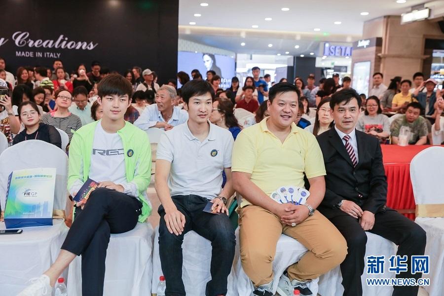 图为奥运冠军雷声、中国击剑队队员董力来到现场。新华网 严晓瑜 摄