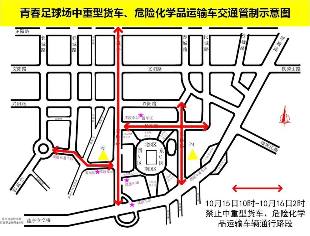 赛事举办期间足球场周边部分道路将分时、分段采取临时交通管制措施,区域交通影响较为明显,请途经车辆提前选择绕行。