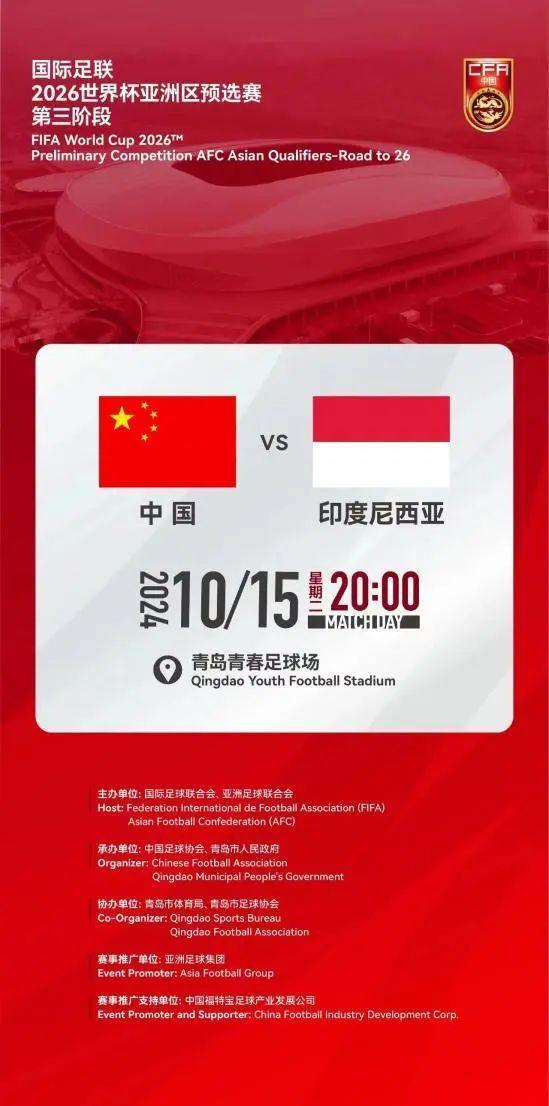 明天(10月15日)20时,青岛青春足球场将承办世预赛亚洲区18强赛国足对阵印尼的比赛。