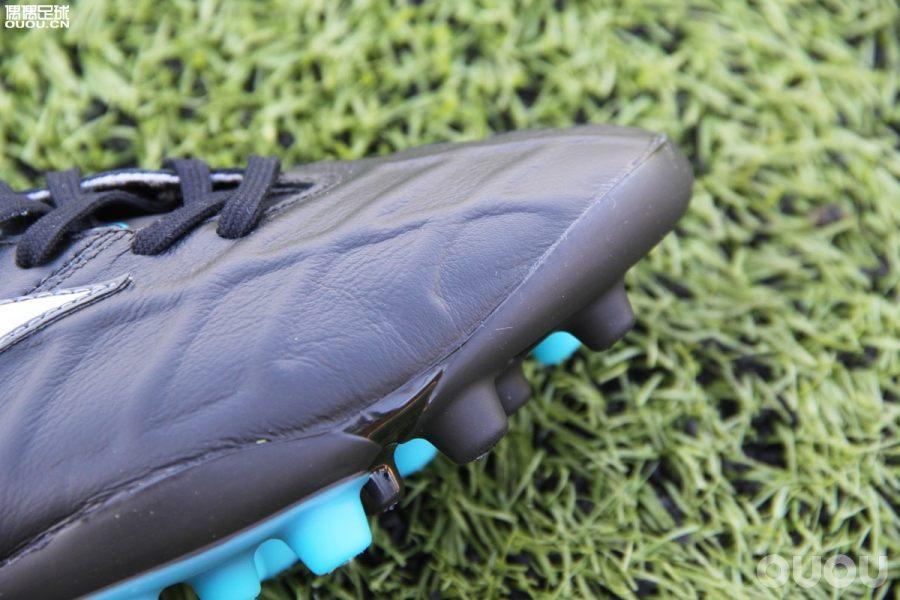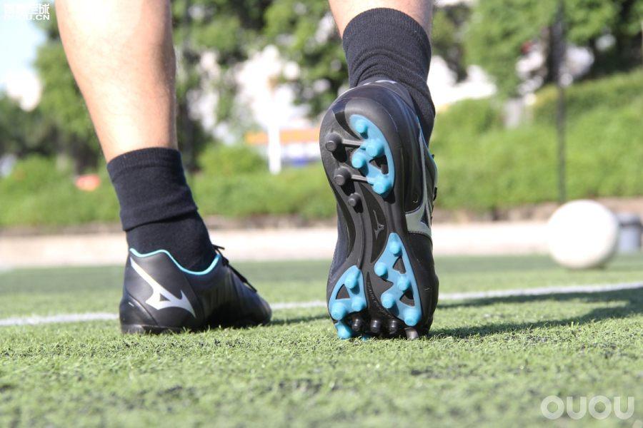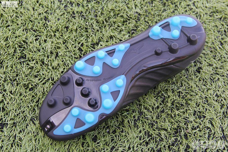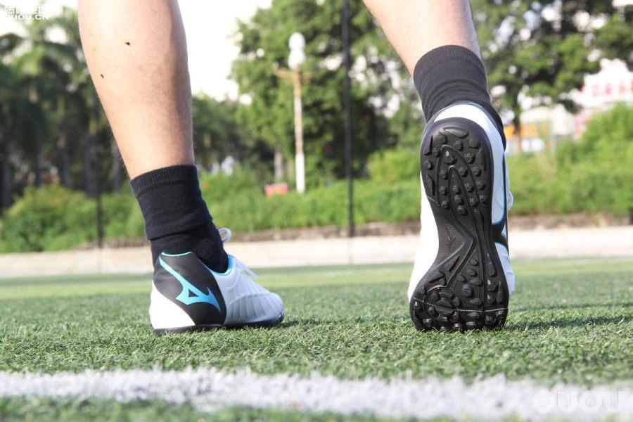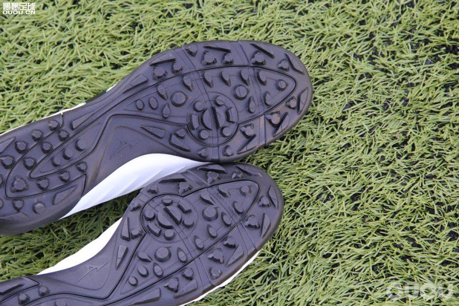 球鞋使用的外底配置是美津浓的薄款“L”型鞋钉大底,这款底的特点非常鲜明,拥有很好的场地感,脚底在跑动、控球时的感受明显。不足之处是来自大底的支撑偏弱,不适合长距离大范围的跑动。如果选择这双日产TF来踢11人制比赛,那需要球员的跑动能力和双脚力量充足。