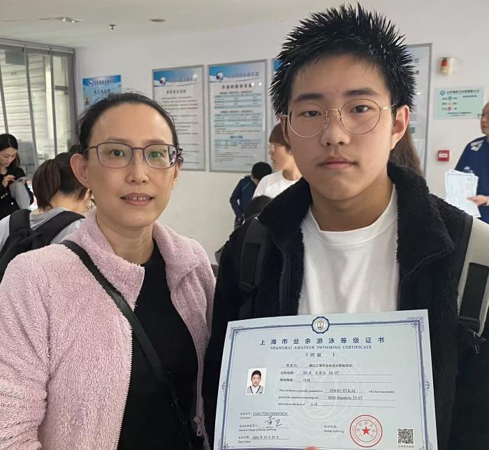 今年13岁的周逸凯保持着每周游泳四次的习惯,雷打不动坚持了三年,这是他第二次参加考级赛,对于晋级到50米蛙泳大师三级和50米自由泳四级志在必得。但通往成功之路,必然充满重重困难。最终,小周在50米自由泳的测试中顺利晋级,但在50米蛙泳大师三级的测试中以0.27秒的微小差距与晋级失之交臂。尽管如此,小周仍然收获了新的感悟:“生活就是这样,失败可能会是主旋律。但就是在一个一个的失败中坚持,总有一天会获得成功。”