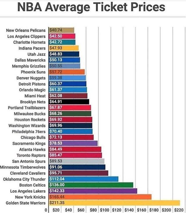 虽然票价没有凯尔特人和尼克斯那么夸张,但相比很多其他队伍,已经是很高的水平了。