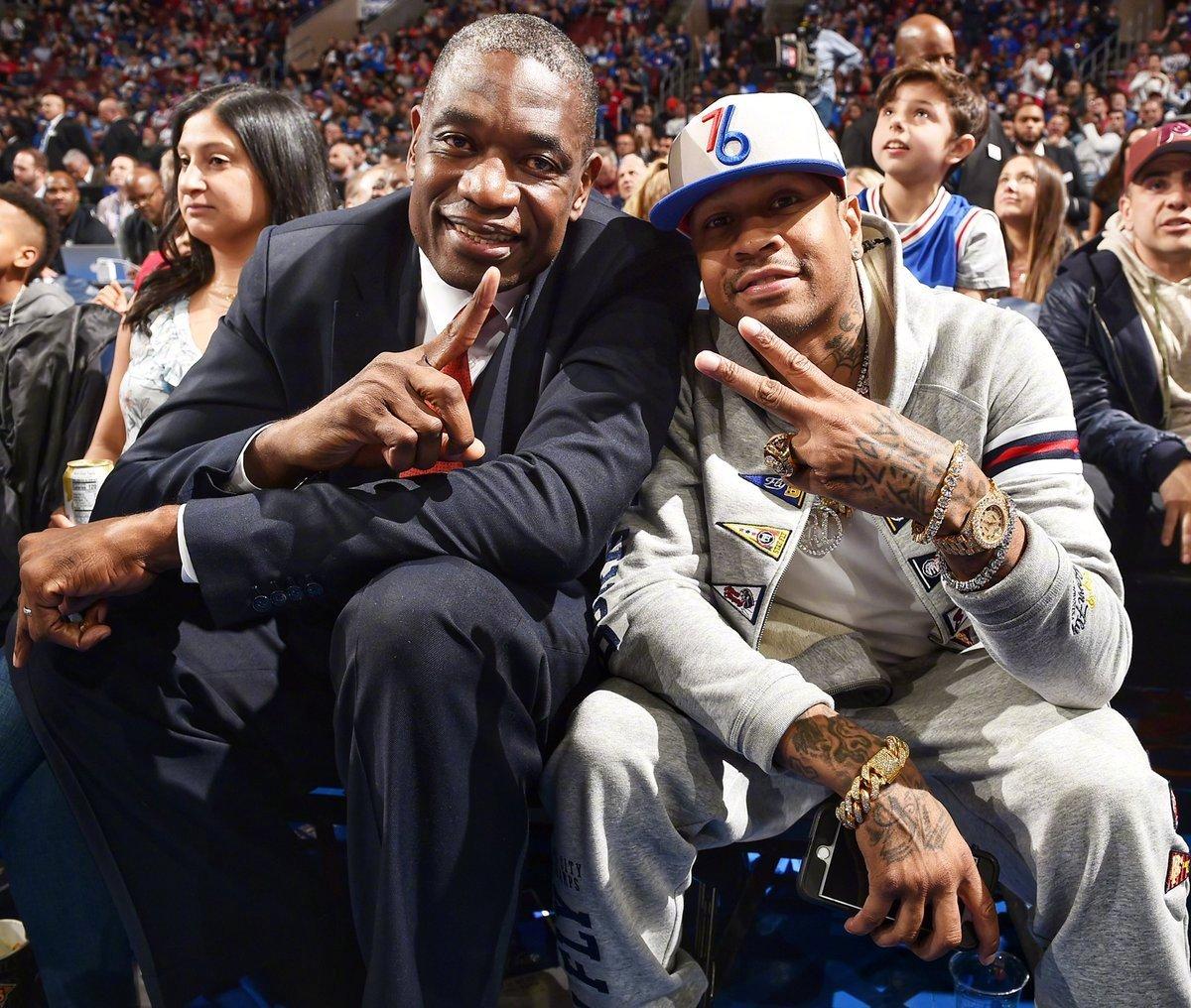 作为曾经把76人带进总决赛的功勋球员,艾弗森和穆大叔看着场上的年轻人重塑球队意志,也是一种传承。