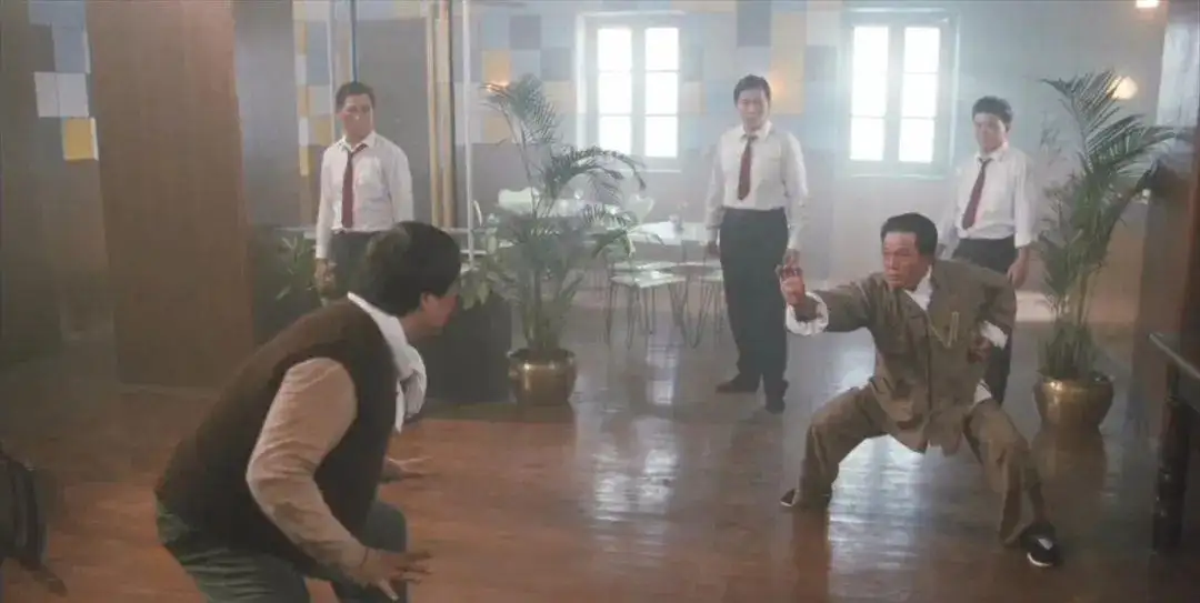出自电影《群龙戏凤》中,作为香港影坛动作电影,中流砥柱式的人物,洪家宝和刘家良,明争暗斗多年后,终于有了武艺上的交锋。