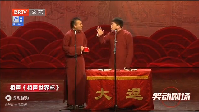 如果台上演员说完了下边不可乐,没人乐,这就是犯规了,要一个地方没乐,口头提醒,两个地方没乐黄牌警告,三个地方没乐红牌就罚下了,就别记了,怎么还带台上来了?这是为赛事准备的第一个道具,就为先罚,可以回去了,放这,单口相声一会就别说单口相声了,裁判带台上来台上了。