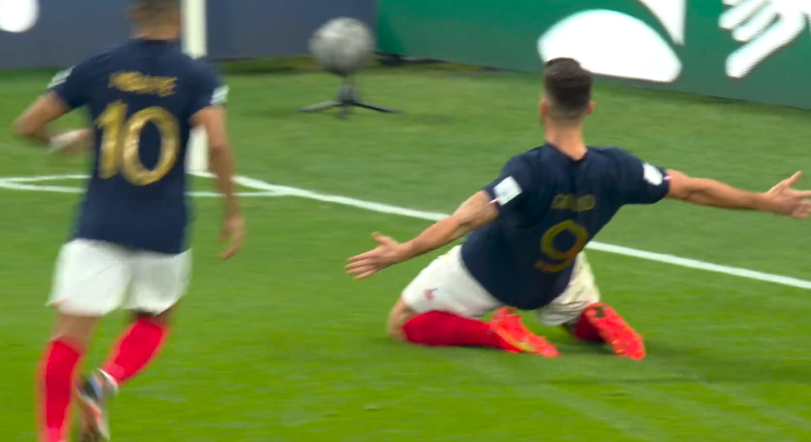 第44分钟,姆巴佩送出直塞,吉鲁禁区左侧得球左脚抽射破门,法国1-0领先波兰。