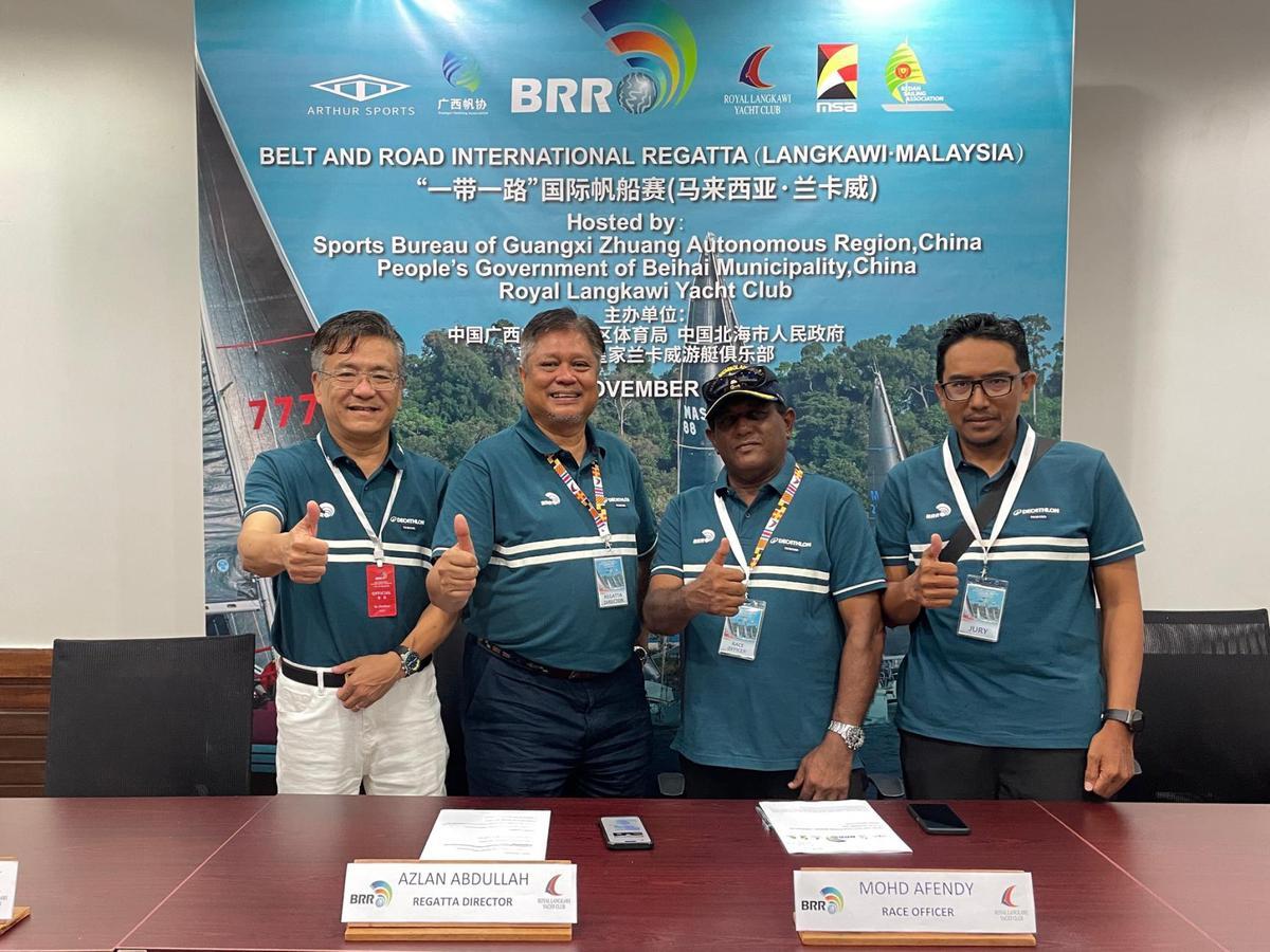 11月1日下午,2024“一带一路”国际帆船赛(马来西亚·兰卡威站)赛前新闻发布会在马来西亚吉打州兰卡威皇家游艇俱乐部举行。本站赛事由中国广西壮族自治区体育局、中国北海市人民政府共同发起并主办,马来西亚皇家兰卡威游艇俱乐部(RLYC)、马来西亚帆船协会(MSA)和吉打帆船协会(KSA)联合组织。