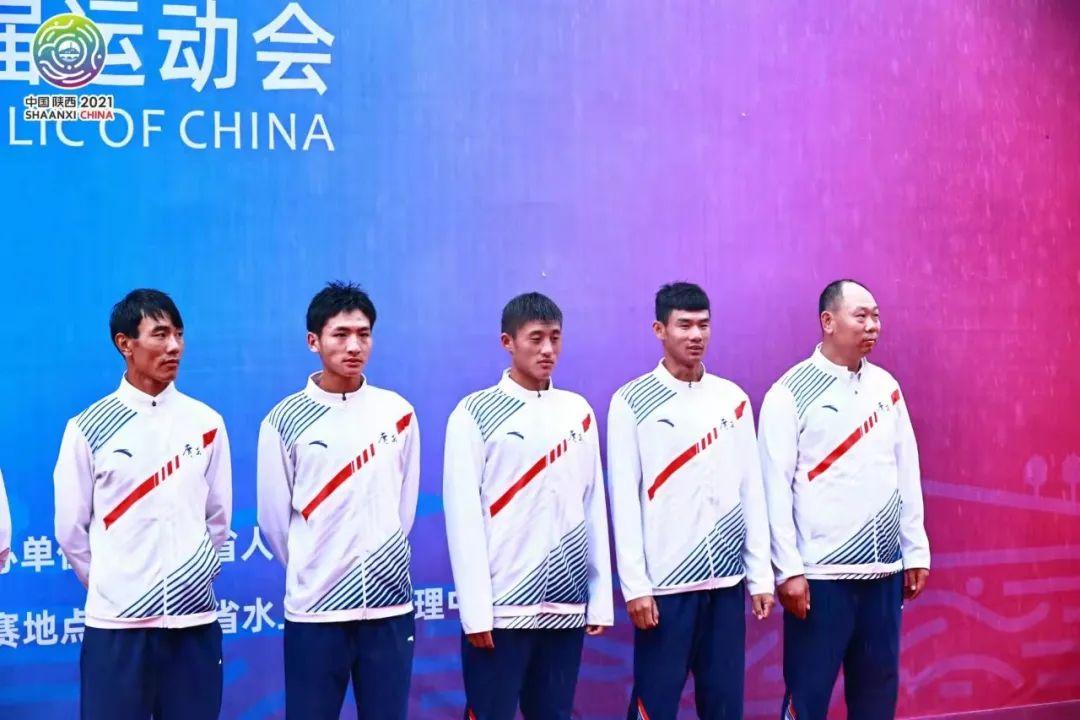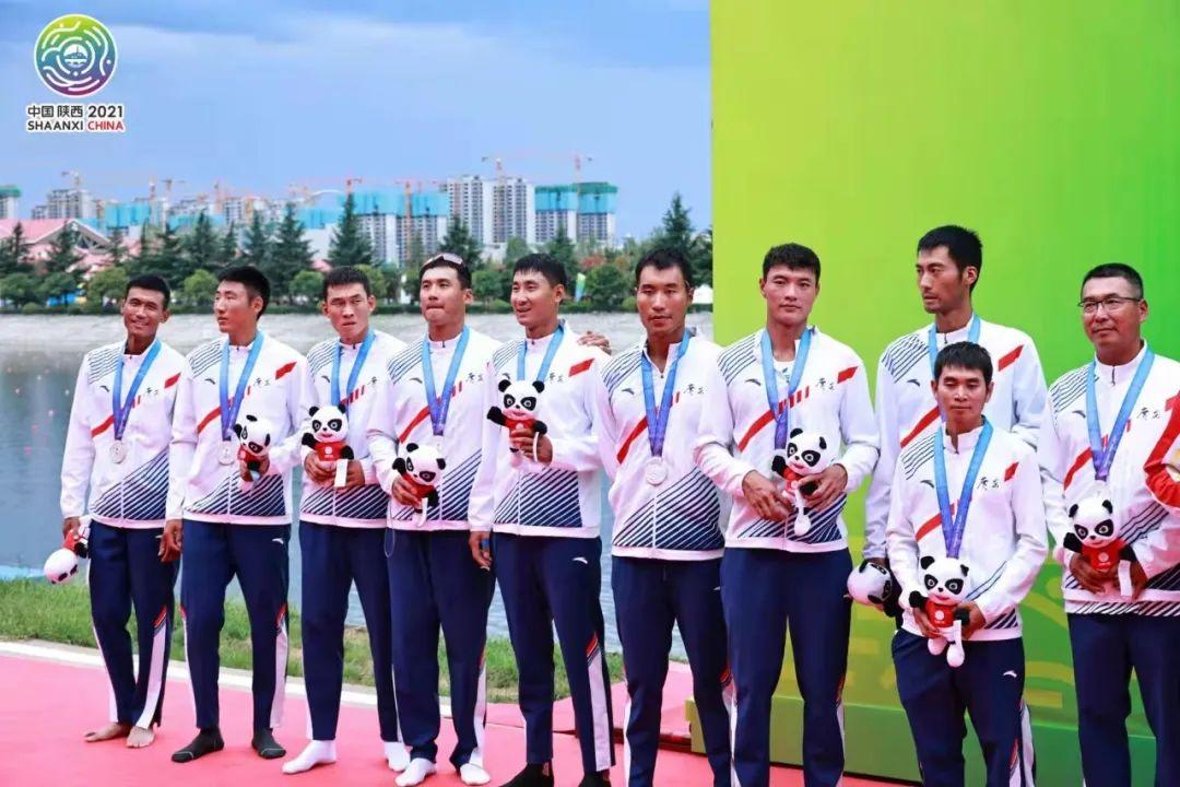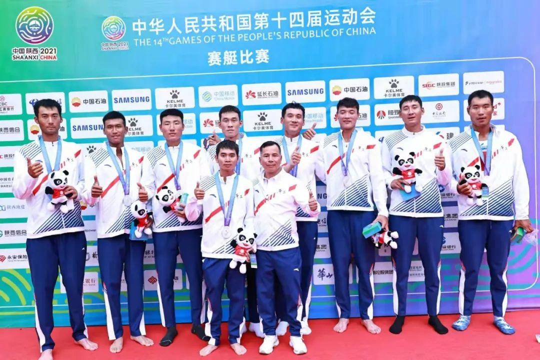 ▲右边第二个是母晓龙。男子四人双桨第五名