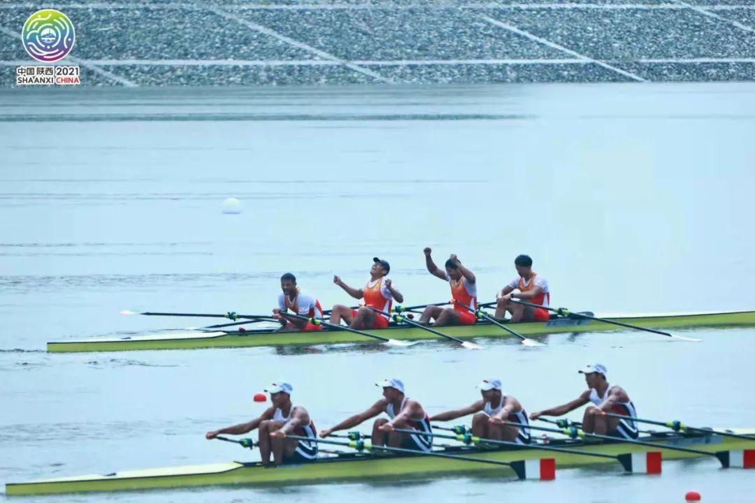 上午9时25分,CCTV5直播第十四届全国运动会-赛艇女单双桨、男单双桨、女双单桨、男双单桨决赛。