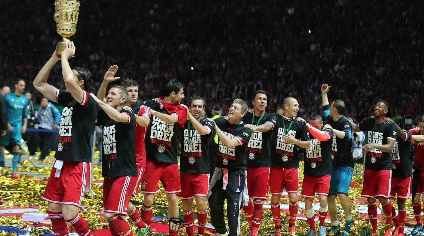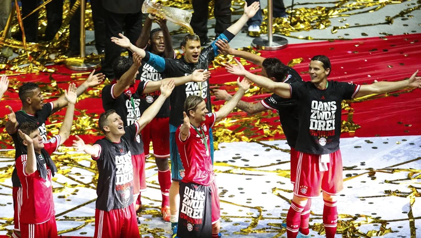 “那时,做这个动作的想法是从我内心发出的。我就是想举着奖杯,然后施魏因施泰格在后面抓着我的肩膀,紧接着所有人都跟着我。那个时刻对我来说太重要了,我十分自豪我们可以完成三冠王的伟业,然后我意识到整支球队都跟在我后面,那是属于我的时刻,这种感觉难以言表,真的太特殊了。”