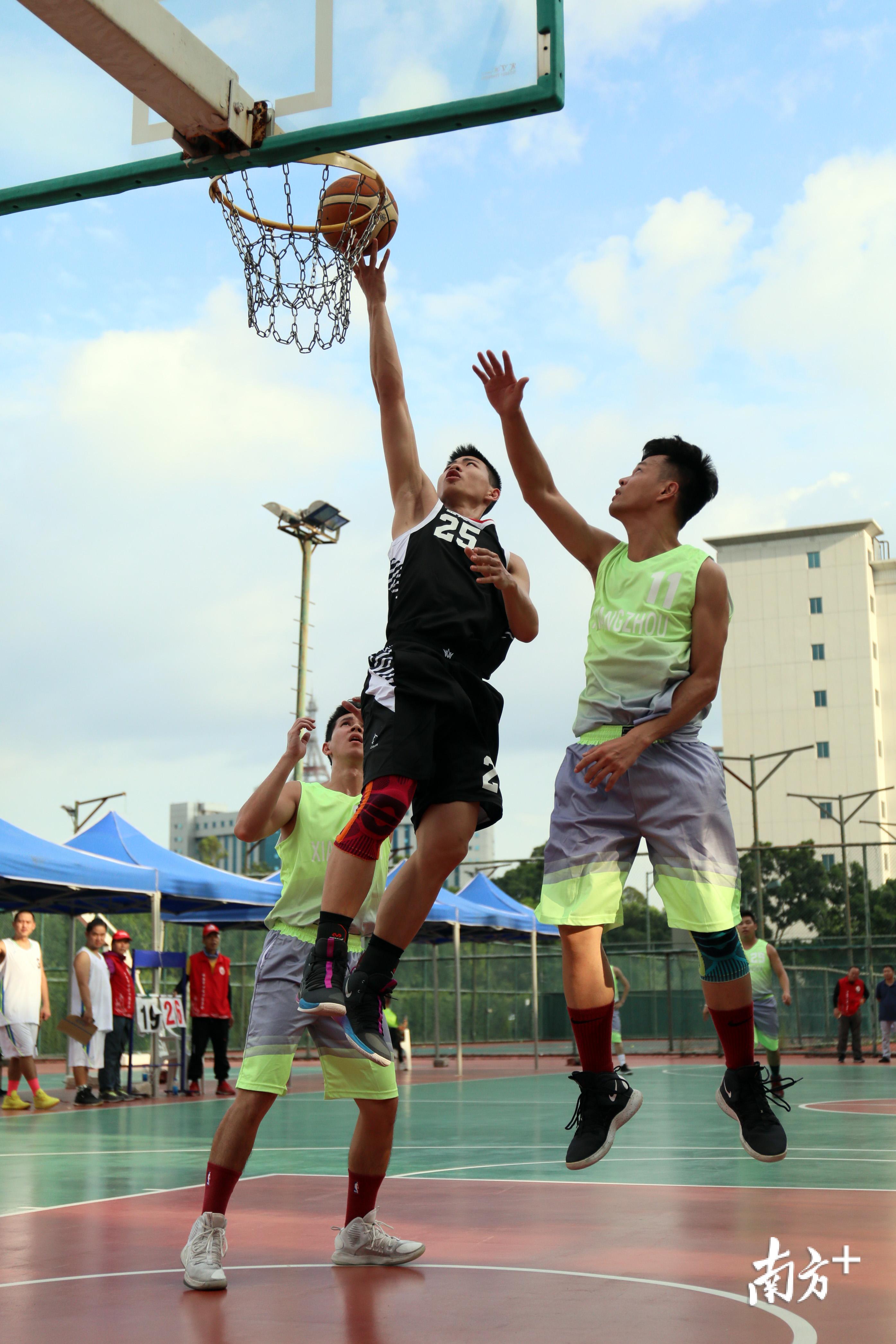 场下是朋友,场上是对手,瞧!这记“火锅”真结实。