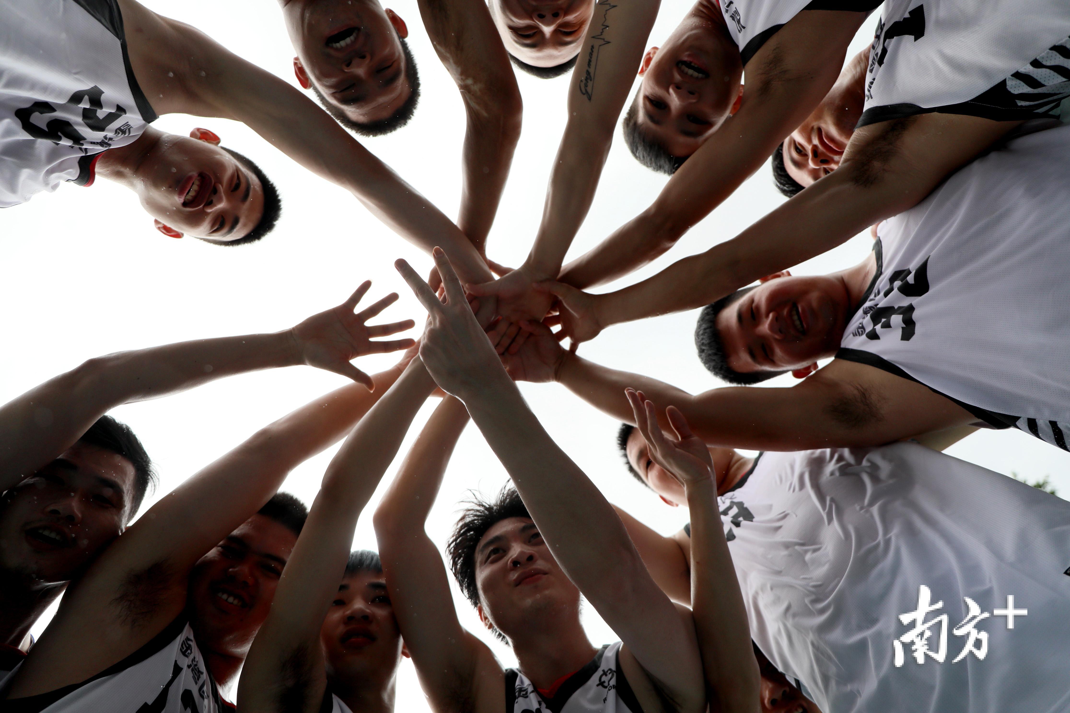 金湾区代表代获得了该项赛事的冠军,队员们围成一圈庆祝胜利。