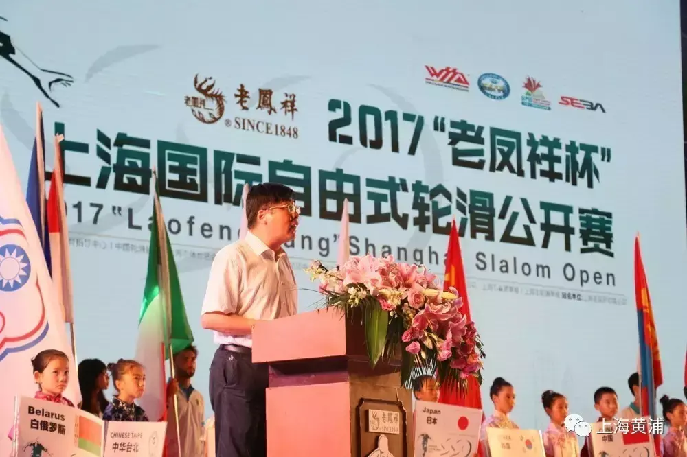 黄浦区区长杲云在开幕式上致辞,他对来自世界各国家及地区的运动员、教练员、裁判员表示热烈欢迎,对各国选手即将展现的精湛轮滑技艺表达殷切的期望,祝愿本次大赛圆满成功。