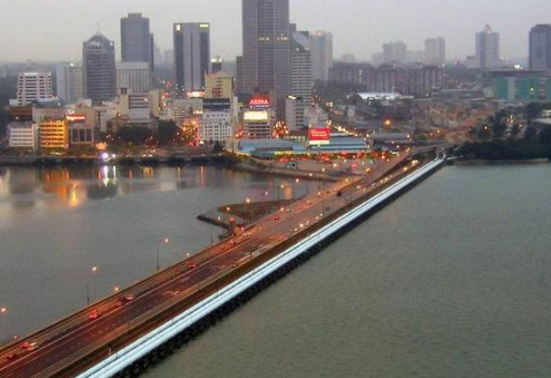 新家坡与马来西亚之间的国境线是一座桥,仔细看,子仔细看,桥是不是有颜色差异。
