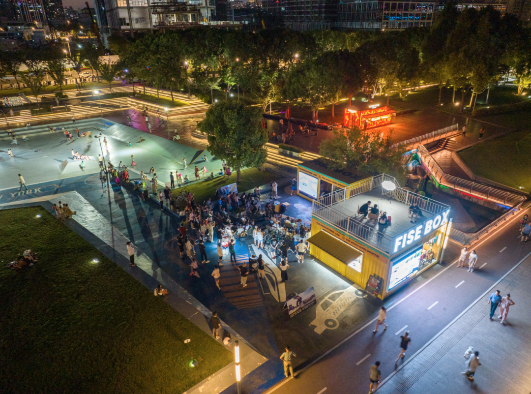7月初,西岸滑板公园开辟了一处名为FISE BOX的极限运动交流区域,提供运动装备、创意衍生品、运动和赛事的普及等服务内容。7月31日晚的露天直播,就是一次推动极限运动走进普通民众的尝试。接下来,FISE BOX还将定期举办放映会等社群活动,露天放映极限运动纪录片和赛事影像,让市民游客对极限运动多些了解和感受。
