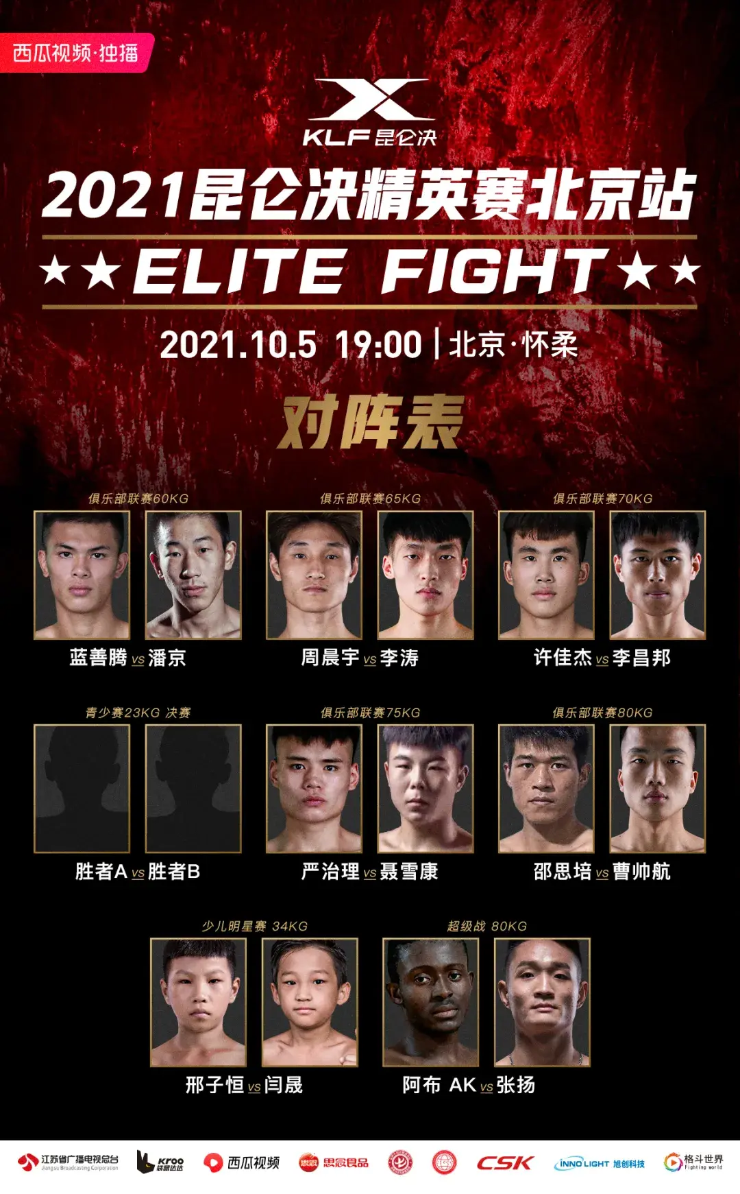 天津战队的潘京 、李昌邦 、李涛 、聂雪康 、曹帅航 等年轻小将,也都在昆仑决职业联赛的赛场上屡获佳绩,战绩不凡!这场龙争虎斗,将让我们见证谁才是联赛俱乐部里青训力量的第一梯队!另外,昆仑决MMA名将“中原飓风”闫西波的儿子“小飓风”闫晟 ,也将在当晚的比赛上迎战来自凯文搏击俱乐部的12岁小将邢子恒 ,向我们展现一场绽放中国青少年格斗力量的热血与激情。