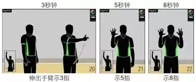 拇指向上是裁判间用来交流的手势。示意准备好了.