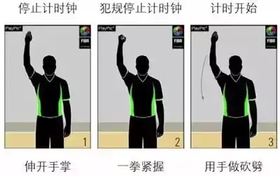 图2握拳举起是犯规(例如阻挡、推人、打手等),要让记录台记录犯规,判定是否罚球。记录台工作人员要时刻关注裁判的动作.