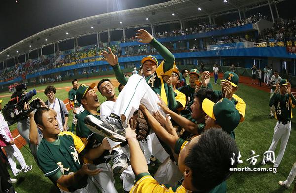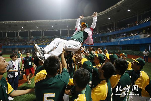 天津队中几名老将侯凤连、高强、苏长龙可能是最后一场比赛,谈到自己的这几名爱将,焦益说到:“他们为天津棒球付出了很多,这个冠军是对他们最好的褒奖。张春轩作为队上年龄最小的球员,他个性很顽强、心理素质也很好,是天津棒球队的希望。第一次参加这么大型的比赛,发挥非常出色,对全队也是一种鼓舞,也是我们今后培养的重点对象。”