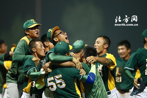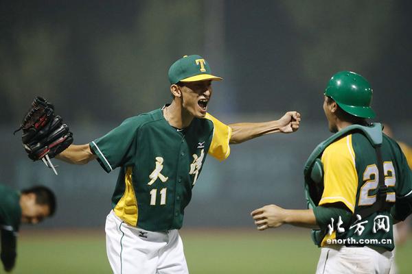 在小组循环赛中,天津队曾以1-2不敌上海队。决赛再次对阵上海队,对手明显较快进入状态。在第一局上半,上海队的两记安打,为上海队拔得头筹,场上比分也来到了1-0。但是天津队随后逐渐找到比赛状态,队员们并没有因为过早失掉的一分而自乱阵脚。第二局上半在守住了上海队的进攻之后,天津队21号刘国击出安打,顺利站上一垒。随后,天津队23号杜孝慈出击牺牲打,自己站上一垒,但刘园被接杀。紧接着,天津队55号王靖超击出一记短打球,上海队的一垒手接球出现了不该出现的失误,使得天津队的杜孝慈顺利站上三垒,王靖超顺利站上二垒。在三垒和二垒都有人的情况下,天津队抓住机会,由22号张振旺击出一记外野安打,天津队连下两分。