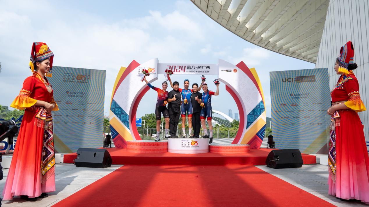 10月20日上午9点15分,2024格力-环广西女子公路自行车世界巡回赛(以下简称2024格力-环广西女子世巡赛)拉开战幕,来自森拉天时车队的桑德拉·阿隆索在终点处绝杀人本健康车队的吉亚达·博格西,获得本赛季最后一场女子世巡赛的冠军。阿隆索的队友玛尔塔·拉赫在随后的小集团冲刺中获胜,拿下第三名。