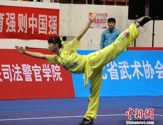 10月17日,2017年全国武术套路冠军赛在河北省保定市开赛。图为女子长拳比赛。 于俊亮 摄