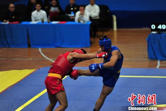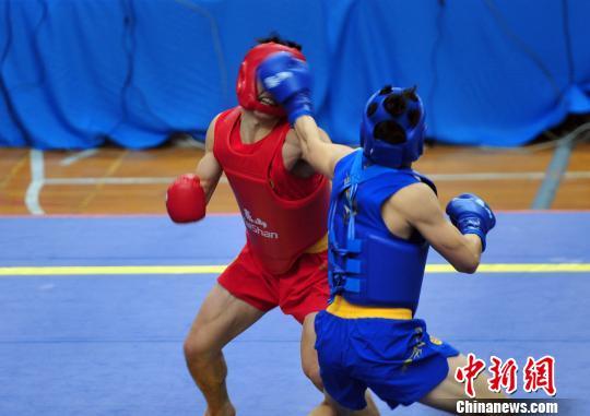 图为2017年全国武术散打冠军赛扬州开赛。 刘江瑞 摄