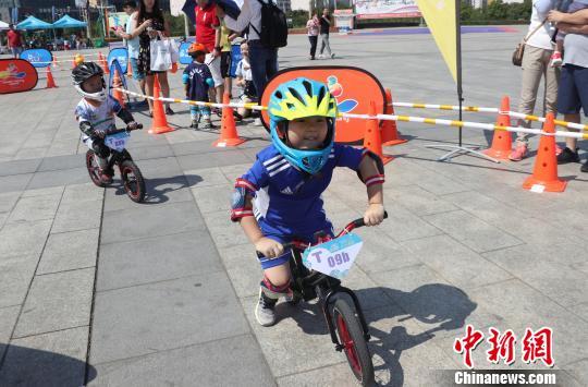 9月9日,一场以“奥梦成真——小小环鄱赛”为主题的儿童平衡车比赛在江西省奥林匹克体育中心全民健身广场举行。 刘占昆 摄