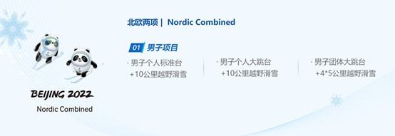 北京冬奥会北欧两项比赛只设男子项目,共3个小项,分别为:个人标准台+10公里越野滑雪、个人大跳台+10公里越野滑雪、团体大跳台+4×5公里越野滑雪。跳台部分的比赛在国家跳台滑雪中心举行,越野滑雪部分的比赛在国家越野滑雪中心举行。