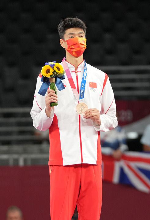 7月25日,在东京奥运会跆拳道男子68公斤级比赛中,中国选手赵帅战胜韩国选手李大勋,获得铜牌。新华社记者 王毓国 摄