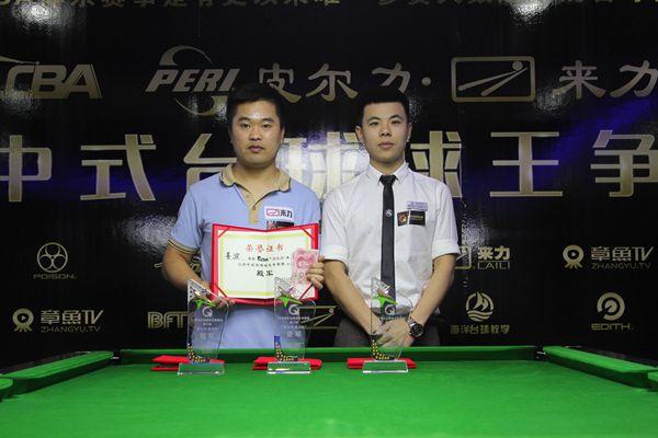 赛场另一边同步进行的是季军争夺赛,姜波VS滕飞,两人实力都不容小觑,滕飞以9:7赢得季军。