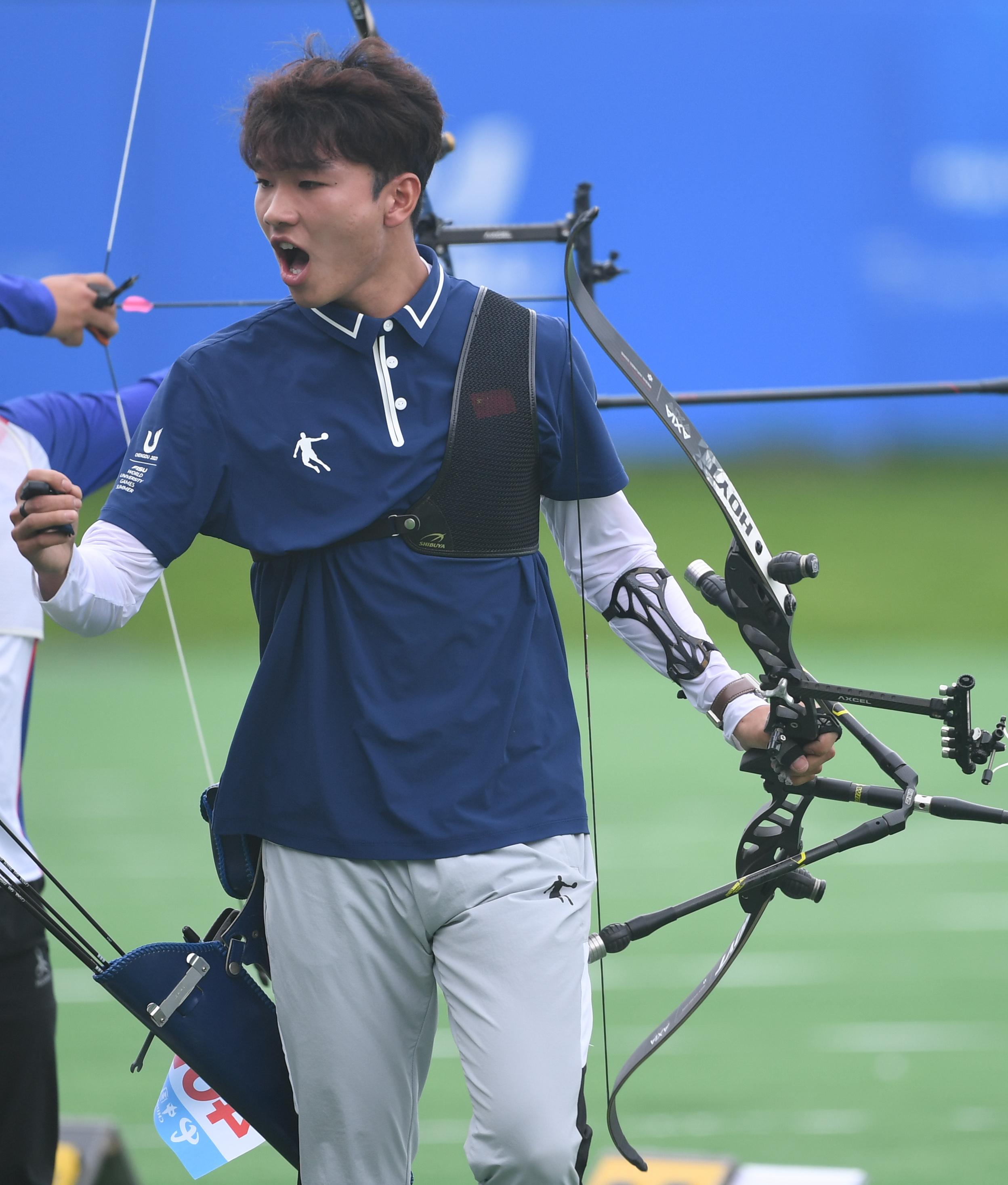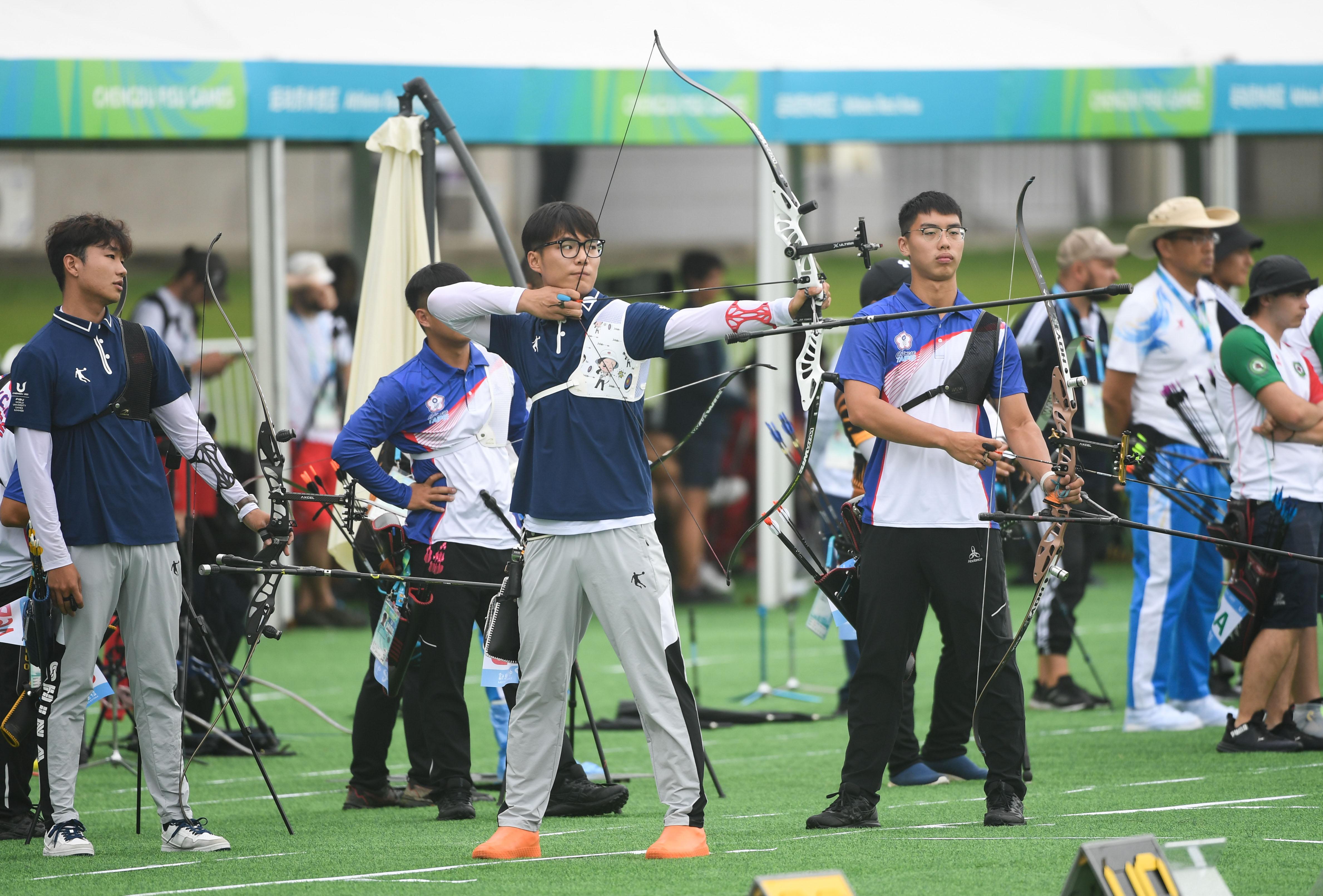当日,在成都举行的第31届世界大学生夏季运动会射箭项目男子反曲弓团体四分之一决赛中,中国队以4比5不敌中国台北队。