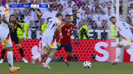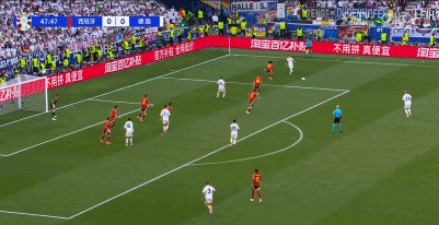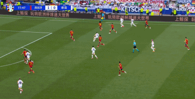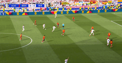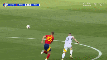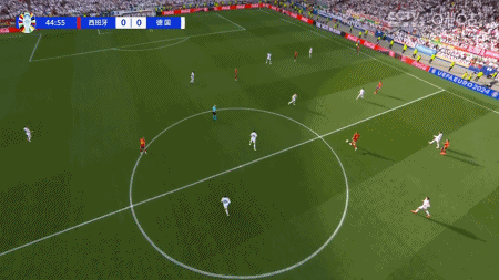 第51分钟,莫拉塔中前场中路拿球分边!亚马尔快速推进到禁区前沿后横传,奥尔莫突然插上推射破门!西班牙1-0领先德国↓